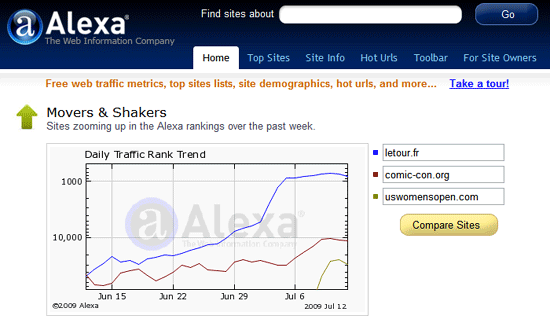 这些要素可能包括社会化书签、搜索引擎、外部链接、流量来源、导出流量,值得注意的是虽然部分数据仍然来自Alexa Toolbar,但是不排除Alexa从第三方购买或者交换数据,这些第三方可能包括流量统计和一些社会化站点,相对来说他们能够公正体现出一个网站的流行度。