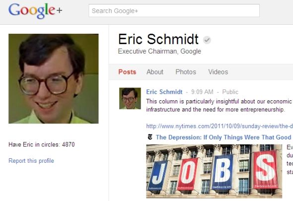谷歌董事长埃里克·施密特的Google+个人主页