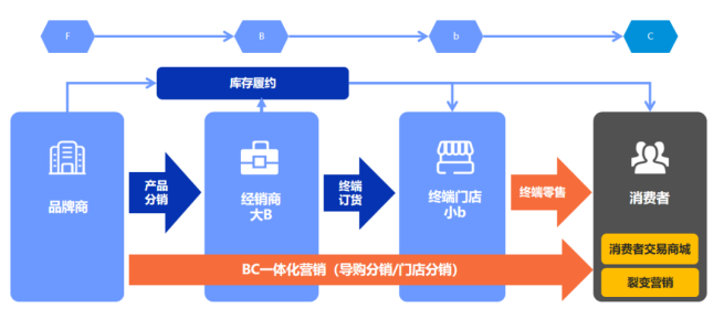 现如今,品牌商只单单针对b端完成分销,但又无法掌握b端用户,就很难实现分润的提升,以及营销成本的降低。b端作为零售业的“临了一米”,品牌想要触达消费者,抢占用户心智,必须打破这“一米”的距离。