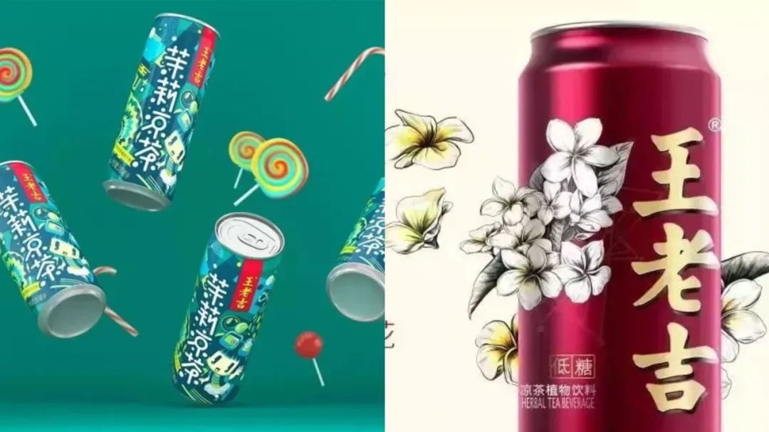 王老吉换新形象同旺仔有异曲同工之处,把罐身设计成极具国风元素的系列图形,例如茉莉花、吉祥如意龙,绿盒包装上各个地区的方言和以“家”和“国潮”为主题的设计。