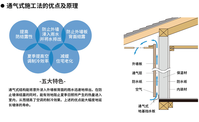 日吉华板采用了先进的干挂板材施工工艺,利用板材的企口搭接,使用金属挂件,地基基材等十余种不同的、日吉华独有的辅助材料,连接固定在单向龙骨上;采用了通气式施工法,在外墙板材的背面和基层墙体之间形成一个能流通空气的通道,可使墙体内的湿气排出,并保持墙体干燥。