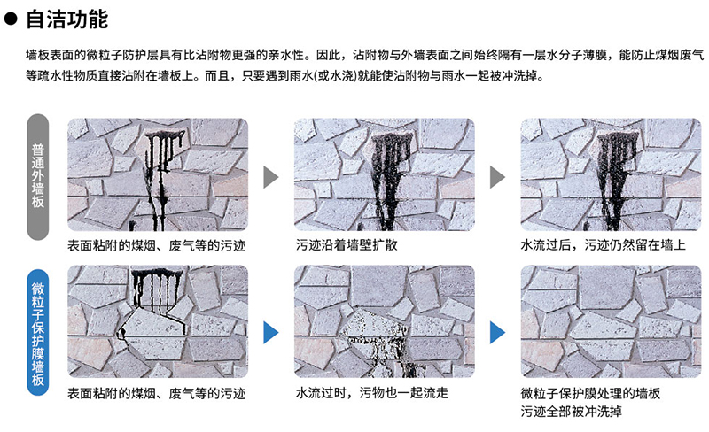 ①装饰效果好 ②安全性 ③耐震性 ④隔热性 ⑤隔音性 ⑥阻燃性 ⑦耐久性 ⑧超高耐候性 ⑨奇特的自洁性 ⑩便捷性