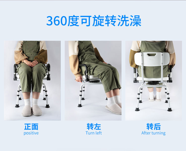 产品硬实力:360°旋转洗澡椅专为长辈沐浴痛点打造——创新旋转结构,轻松解决 “ 起身难、转身险、易滑倒 ” 等问题;人体工学设计+高承重铝合金材质,兼顾舒适与安全,经反复测试,完美适配养老照护场景需求;