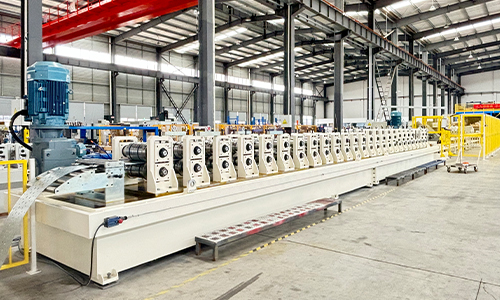 生产线专为高强钢研发的成型机通过50道次渐进式成型工艺,完美攻克了高强度钢材成型中的开裂、回弹等行业痛点。每道成型辊轮均采用德国进口碳化钨涂层,经有限元模拟分析优化曲线设计,使材料在每一步变形中都保持均匀的应力分布。生产过程中,实时应力监测系统会自动采集各道次的压力数据,当检测到材料屈服强度波动时,伺服电机可在0.1秒内调整辊轮压力,确保高达终成型的B字型截面尺寸公差控制在±0.3mm以内。
