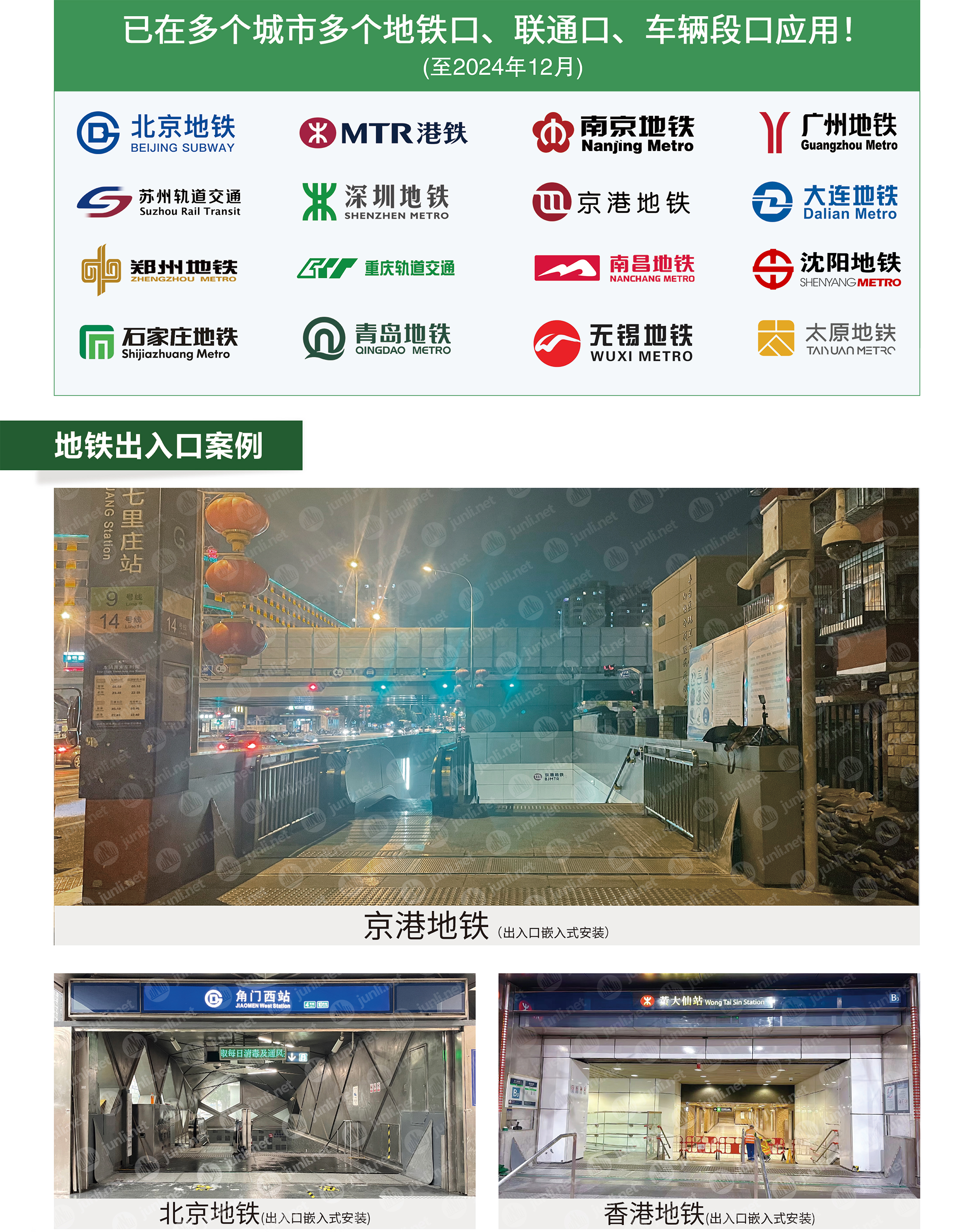 军理水动力全自动防淹闸门在北京、广州、香港、重庆、南京、郑州等16个城市地铁站均有安装;此次在无锡地铁的应用,也体现了无锡地铁对先进技术的积极拥抱和对防汛工作的高度重视。军理也将继续发挥自身的技术优势,不断创新,为更多的城市提供质量的防洪解决方案。