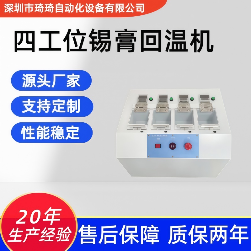 选择合适的SMT锡膏回温机需要综合考虑产能需求、智能化水平、数据管理能力和设备可靠性等多个维度。具备精确时间操控、防呆防误取、数据记录追溯等功能的智能化锡膏回温机,能够全方面提升SMT生产线的效率和质量控制水平。在设备选型时,应根据实际生产需求和未来发展规划,选择功能配置合理、技术先进、质量可靠的产品,为企业的可持续发展奠定坚实基础。作为自主研发、生产、销售一体化的源头工厂,琦琦自动化深耕SMT周边自动化设备领域,打造的全自动锡膏回温机,可精确匹配产线节拍,实现锡膏恒温解冻、智能管控。支持按需定制机身尺寸、回温程序、对接接口等功能模块,满足不同产线个性化需求。厂价直供模式省去中间环节,以高性价比助力企业降本增效。