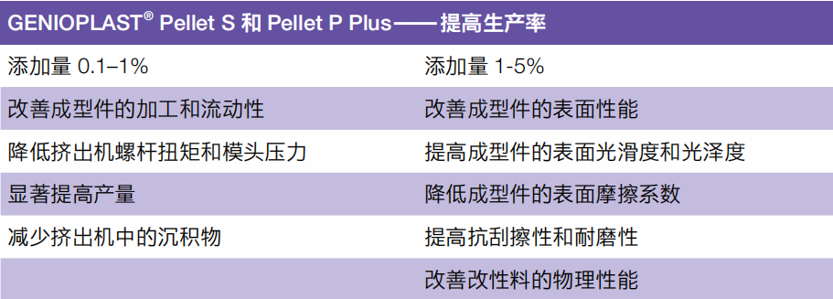 瓦克高粘度硅氧烷聚合物和特殊改性的二氧化硅所组成的 GENIO***ST® 系列产品是一类具有相容性的热塑性塑料改性剂。GENIO***ST® Pellet S 和 Pellet P Plus 可以赋予改性料独特的加工性能,优化其生产效率,并改善成型件的表面质量。与一些市售添加剂相比,GENIO***ST® Pellet S 和 Pellet P Plus 不会影响改性料的拉伸强度和抗冲 击强度等重要物理性能。在用于矿物填充改性料时, GENIO***ST® Pellet S 和 Pellet P Plus 还能提高此类改性料的抗冲击强度,同时与阻燃剂产生协同增强的效应。