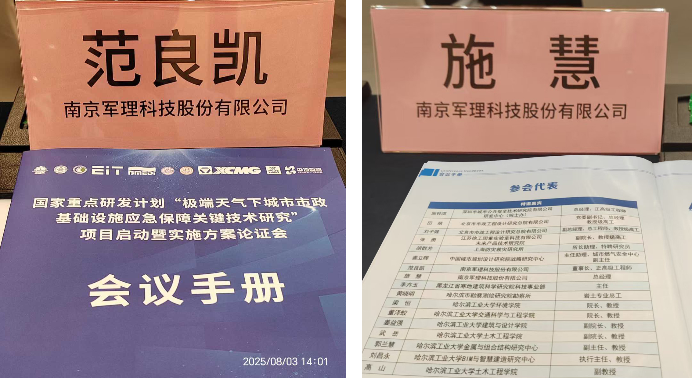 近日,国家重点研发计划 “极端天气下城市市政基础设施应急保障关键技术研究” 项目启动暨实施方案论证会在哈尔滨举行。此次会议汇聚了行业内众多Q威砖家、科研机构以及企业D表,共同探讨在全球气候变化背景下,如何提升城市市政基础设施应对极端天气的应急保障能力。南京军理科技股份有限公司范良凯、施慧作为特邀嘉宾参加了本次会议。