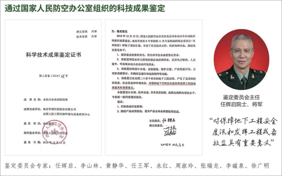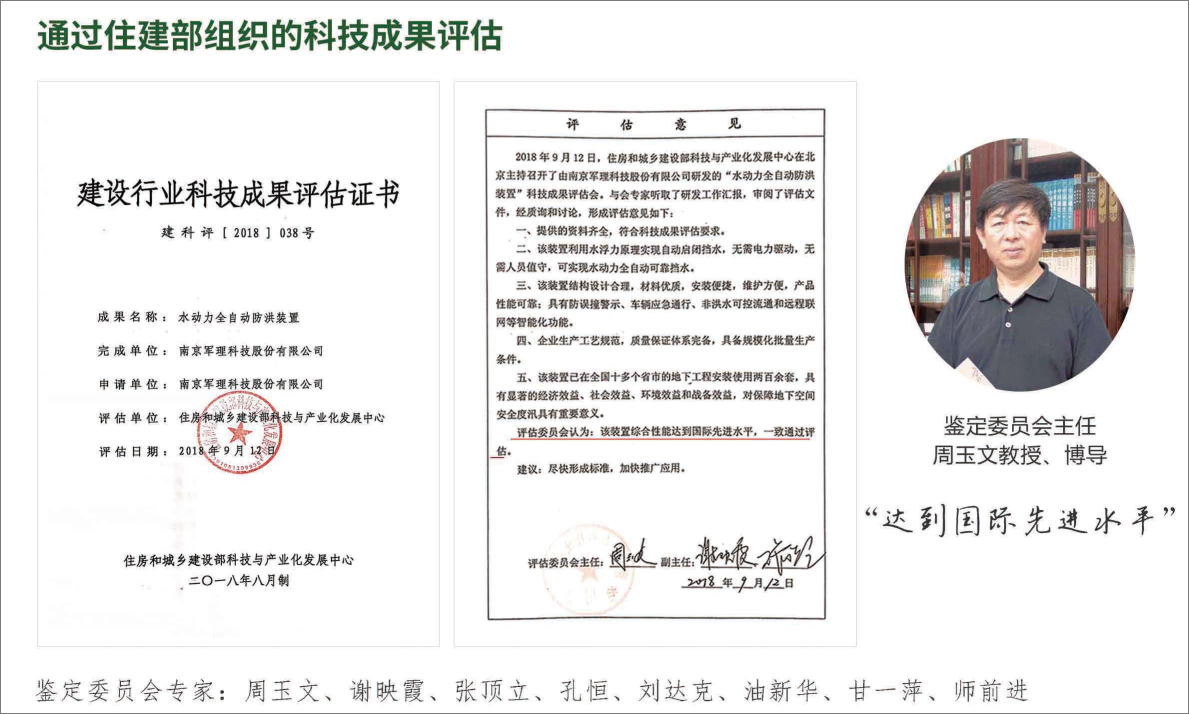 目前,此项成果已通过住房和城乡建设部科技成果评估并获推广证书,还通过了国家人民防空办公室科技成果鉴定,在全国多城广泛应用,为城市防洪防淹工作注入了强劲动力。