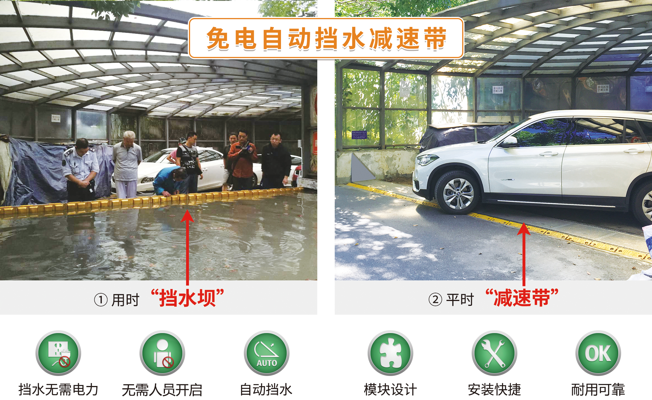 军理股份始终专注于防洪防淹技术的创新研发。其明星产品——建筑用水动力全自动防淹闸门,有效解决了地下车库、地铁等地下空间在汛期易遭雨水倒灌的难题。产品可快速安装于地下空间出入口,无水时作为车辆限速带使用,遇水倒灌时,依靠水的浮力自动升起,无须电力驱动,无需人员开启,可实现24小时全自动挡水。同时,还可远程联网,实时上传水情和设备状态,便于管理人员全程掌握情况。