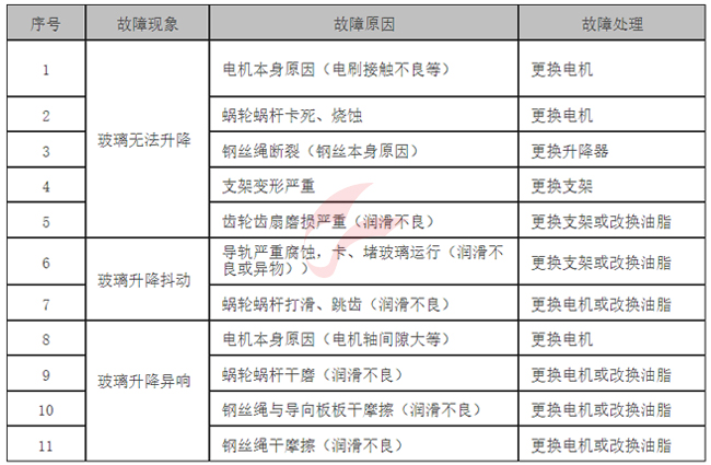 玻璃升降器出现的一些故障