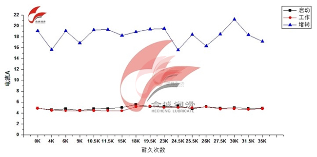 3、电流值取样规则如下:每上升下降1000——2000次为一个循环,进行取样,每次 测量10组开闭循环的电流值,包括上升下降的启动电流、堵转电流。如此反复一直持续到出现故障停止工作或达到预期的耐久寿命为止。