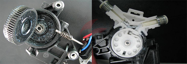 汽车玻璃升降器基本结构及润滑部位: