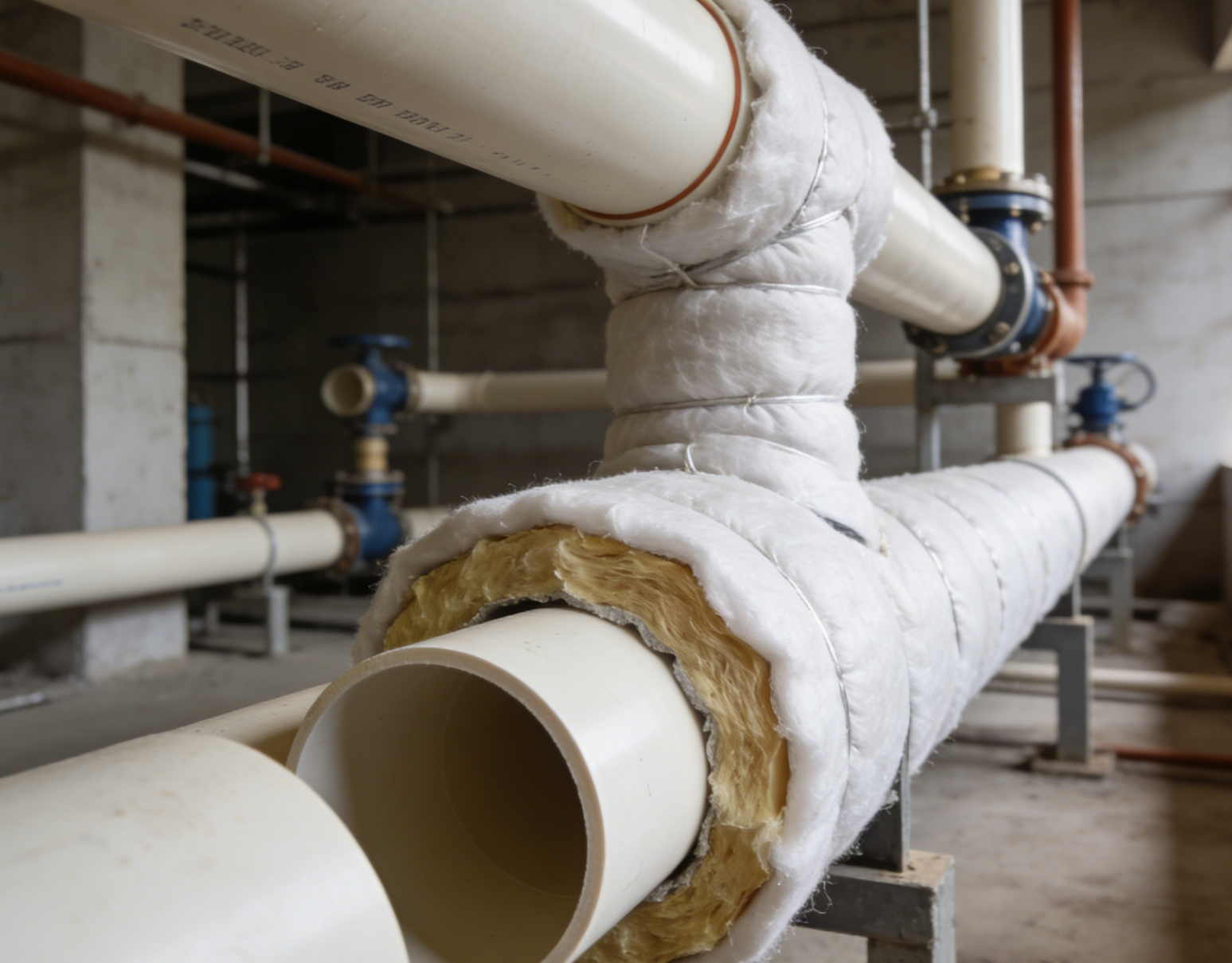 解决结露问题需从三方面入手。材料选择上,应选用导热系数≤0.034W/m℃的难燃 B1 级保温材料,优先选择聚氨酯发泡或闭孔橡塑等产品。施工环节需严格遵循《建筑给水排水及采暖工程施工质量验收规范》,确保保温层紧贴管道、接缝严密,阀门、法兰等附件同步做好保温。使用维护中,潮湿环境应加强通风除湿,定期检查保温层是否破损脱落。