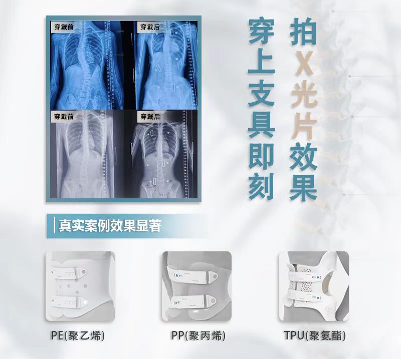 部分轻度患者通过佩戴支具成功阻止侧弯进一步发展,改善正常脊柱形态;中、重度患者的侧弯角度也有不同程度减小,身体疼痛等症状得到改善。