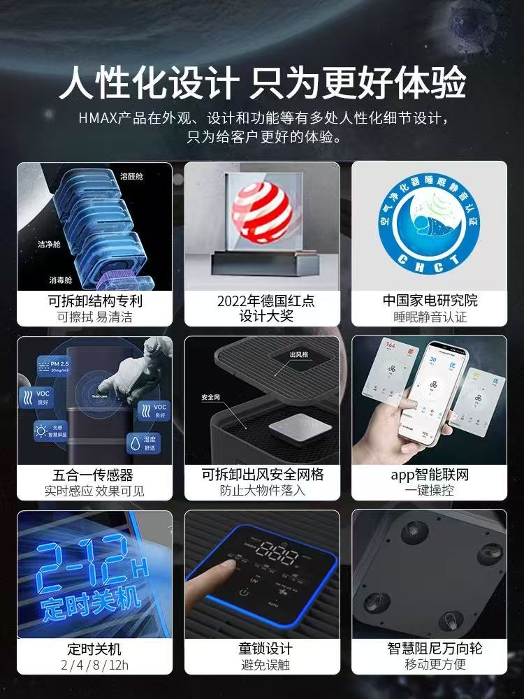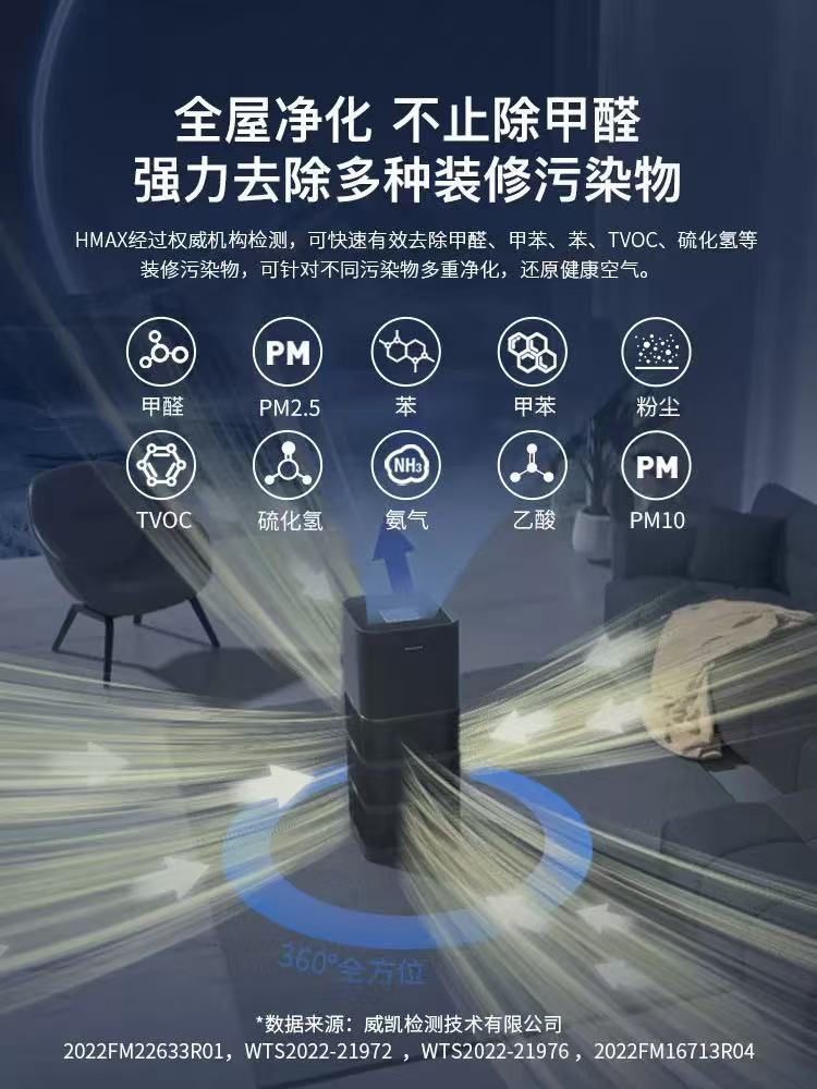 在甲醛净化这一**需求上,产品采用Hisiv锁醛瞬吸晶体与CTOX溶醛再生分子的双技术协同方案。Hisiv材料如同精密的捕捉网,能主动吸附空气中的甲醛分子并牢牢锁定,避免吸附饱和后出现二次释放的问题;后续CTOX技术则将锁定的甲醛分子分解为无毒无害的二氧化碳和水,从根源上完成甲醛净化。搭配H13级高效HEPA滤网,不仅能实现对0.3微米颗粒物99.97%的过滤效率,还能拦截细菌、病毒等微生物,形成气态污染物与固态颗粒物的双重净化防线。