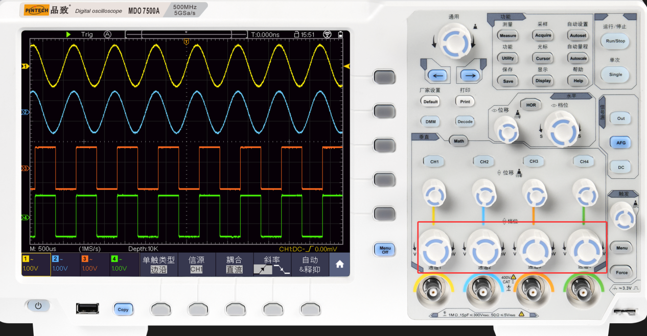 使用示波器进行电子测量测试时,可以采用以下方法使波形更加清晰、稳定,以此提高信噪比,以下以品致MDO7500A为例介绍操作: