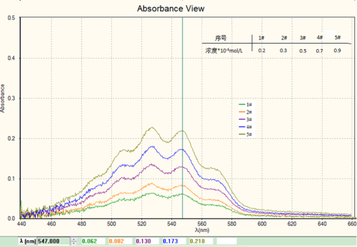 不同浓度KMnO4溶液的吸光度曲线: