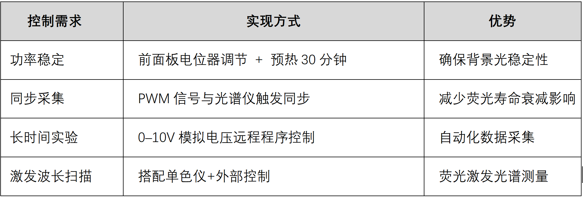 o 线性调节功率,便于定量实验设计