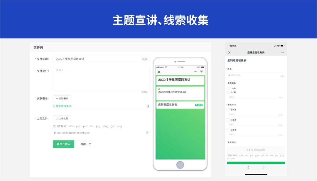 以往企业招聘部门在PPT宣讲后、依赖企业邮箱、微信等联系方式与候选人进行沟通,或者当场收集纸质意愿表格。