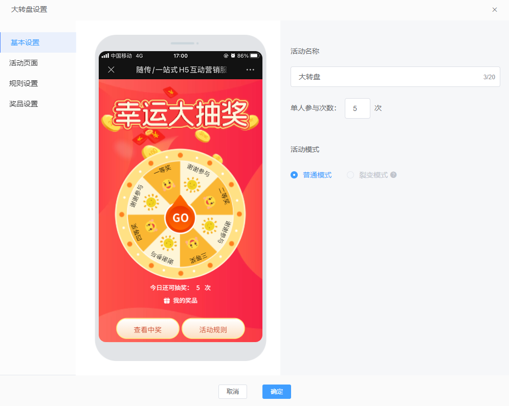 只需要设定好活动主题,选择合适的营销页面,通过简单修改奖品信息便可发布,分分钟就可以制作完成;