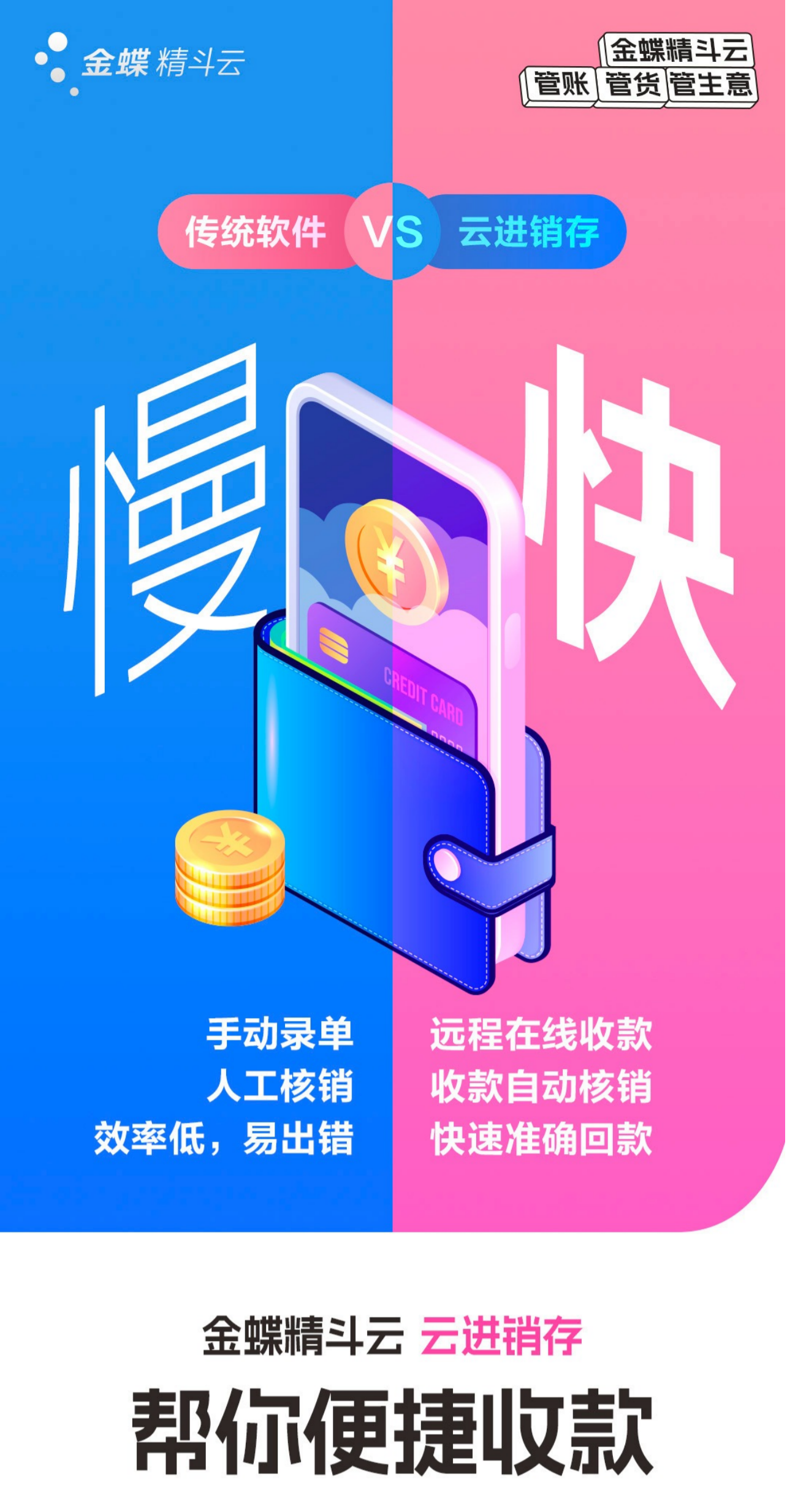 云进销存优势:支持远程在线收款,收款后系统自动完成核销,实现快速准确回款;