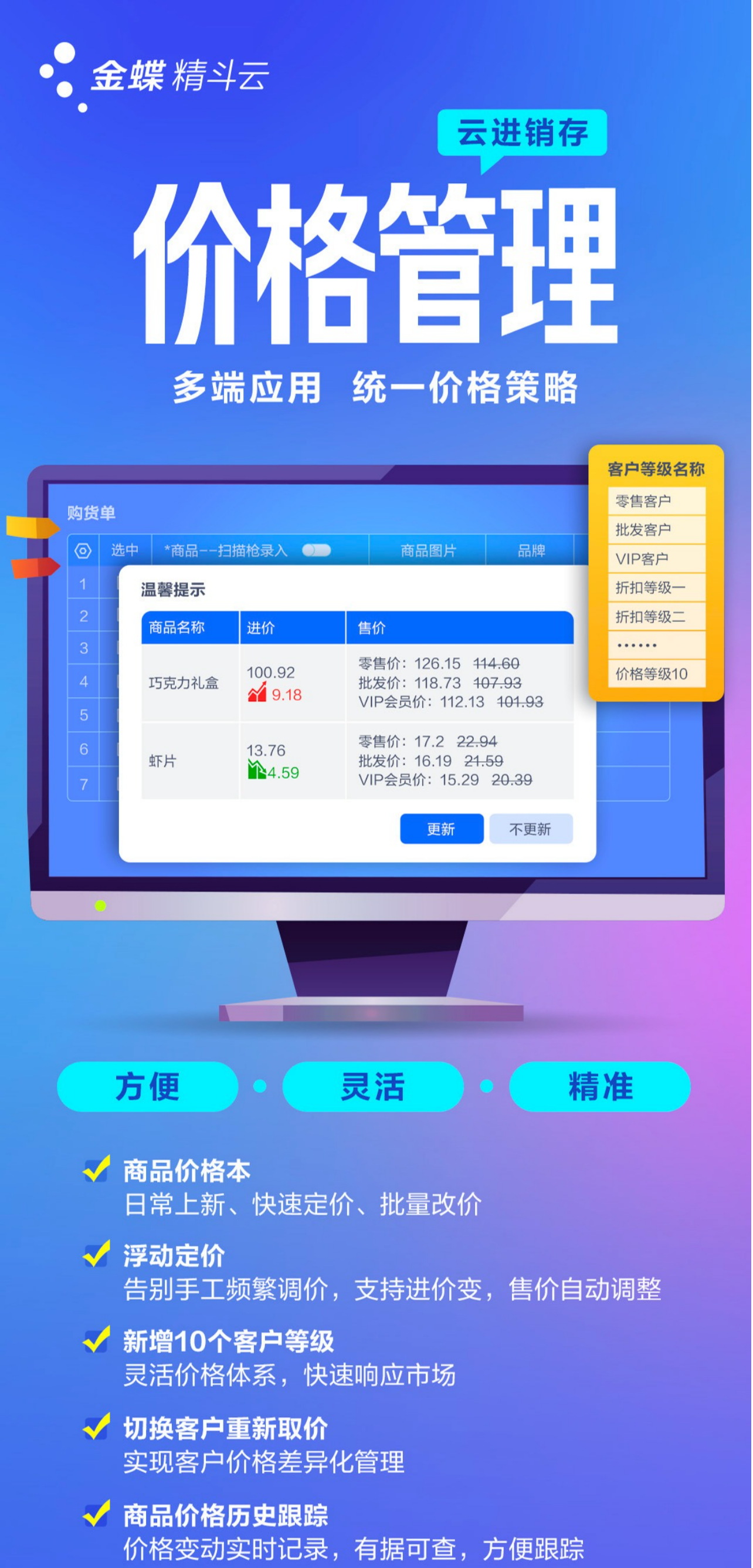 精斗云云进销存的价格管理功能,正是针对这些痛点搭建的 “智能定价体系”,从定价、调价到核价全链路提效: