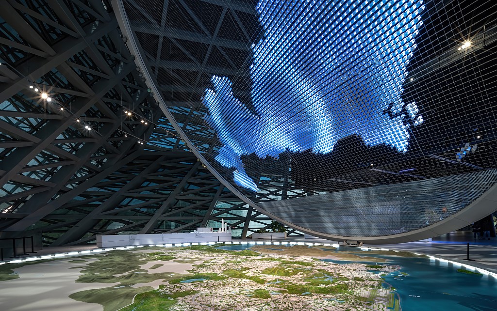 工业园区全息投影沙盘:某工业园区采用 “全息投影 + 实体模型” 的数字沙盘,主要区域保留 1:500 的实体沙盘,再通过透明 OLED 屏幕叠加产业数据;边缘区域设置触控交互台,参观者可随时调取任意地块的 3D 模型,查看土地性质、规划指标等详细信息,实施后方案展示效率提升 40%。