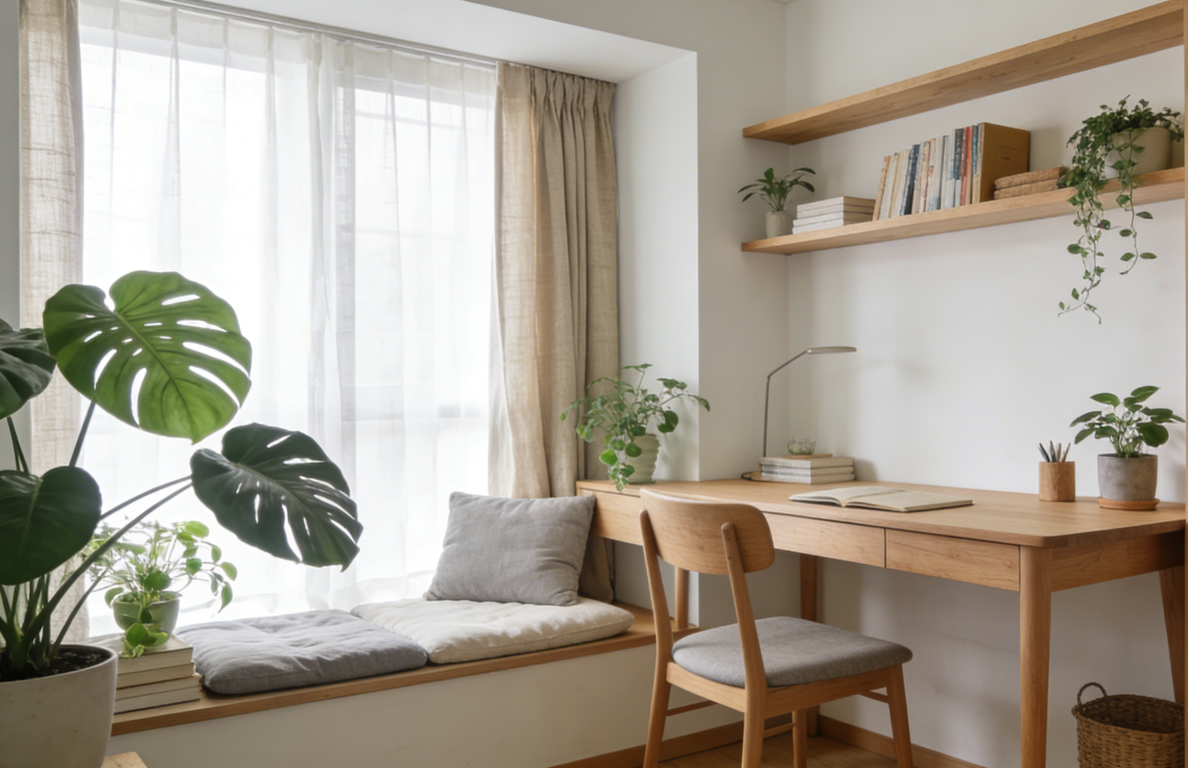 开放式原木风书房设计:把自然与通透搬进居家学习区
