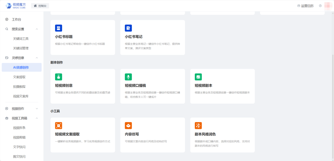 03持续打造 爆款内容内容是视频的思想,它整体标签直接决定了精细流量走向,利用视频魔方AI创作工具精细高效制作爆款选题内容。短视频创意根据热门话题标签结合主营业务,批量传创作爆款选题,无限延申热点趋势。创作爆款脚本爆款选题结合企业特色服务内容展开创作,持续输出爆款内容脚本,不限于口播、剧本等类型。封面优化结合臻图爆款封面直接创作,吸引受众眼光,牢牢锁定精细流量。了解更多产品功能和方法,尽请关注我们!