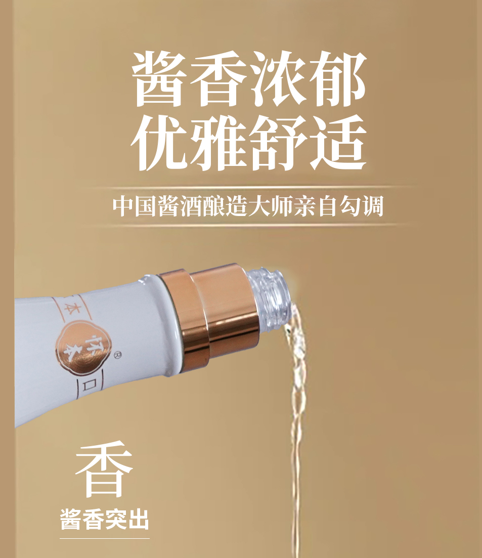 精选本地质量红缨子糯高粱为原料,搭配小麦制曲,遵循传统酱酒酿造工艺,历经多道工序匠心打磨,从投料到出厂经过足时陈化,让每一滴酒都沉淀时光的味道。打开瓶盖瞬间,酱香扑鼻而来,细闻还能捕捉到粮香与花果香的交织,层次丰富而协调;观其色,酒体微黄透明,挂杯明显且均匀,尽显稠润质感;入口时绵柔醇厚,没有辛辣灼烧感,诸味协调平衡,下咽后回甘迅速,余味悠长,空杯留香持久,完美诠释了质量酱香酒的独特韵味。