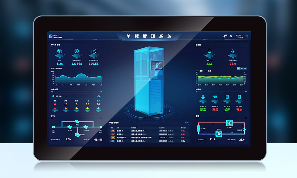 系统支持本地与云端双模式管理。用户可通过本地触摸屏、Web或移动APP访问。云端功能提供远程运维支持,便于分布式机柜的集中管理。