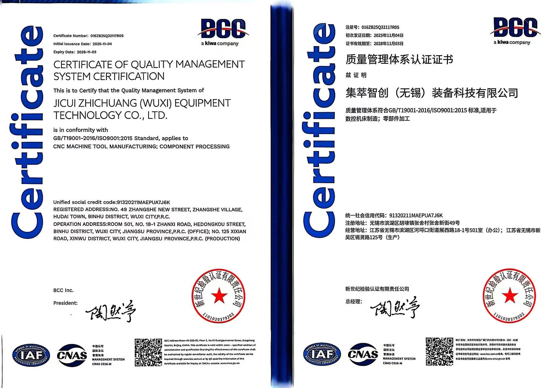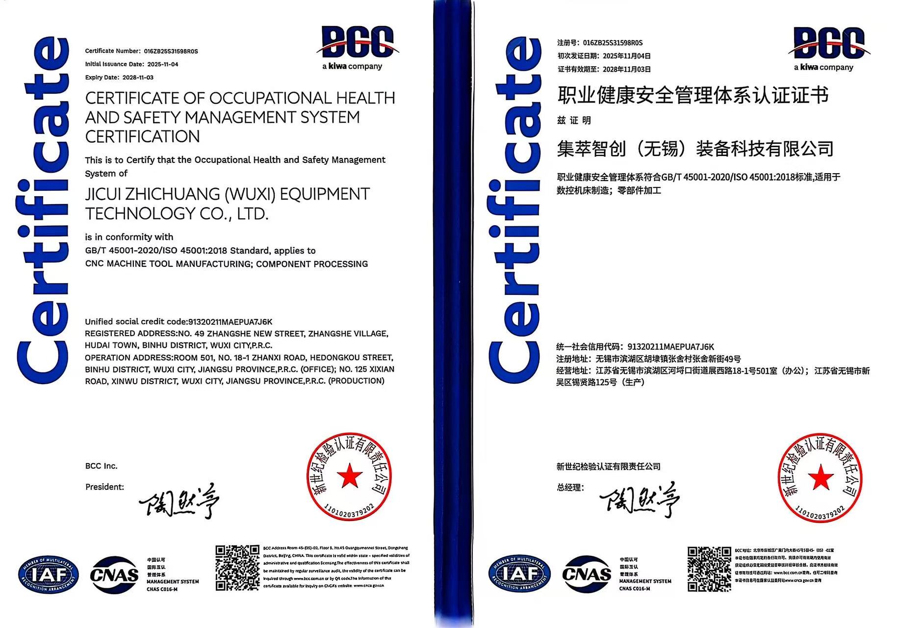 近日,集萃智创(无锡)装备科技有限公司顺利通过质量管理体系、环境管理体系、职业健康安全管理体系认证审核,成功斩获三体系认证证书。这一成果标志着公司在管理规范化、运营标准化方面迈上新台阶,也充分展现了企业在质量管控、环境责任与员工权益保障等领域的综合实力。
