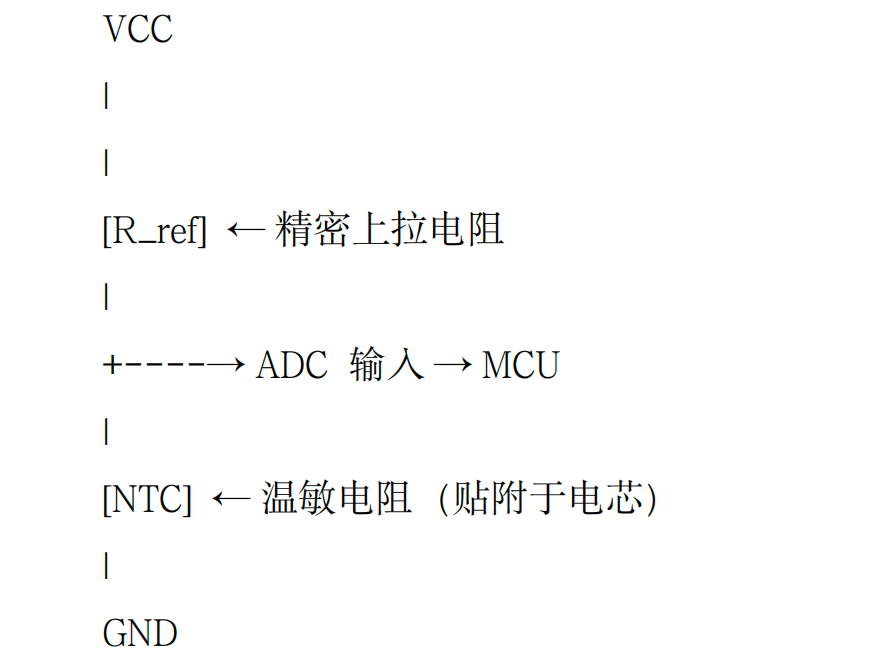 在 BMS 中,最常见的温度采集电路如下图所示(文字描述):