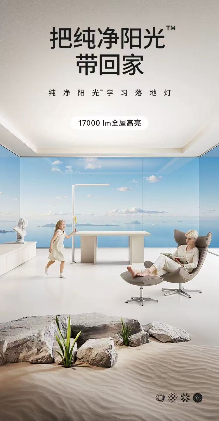 “纯净阳光” 的**,藏在仿生大气层全漫反射技术里:994 颗 Sunturulux®3.0+2.0 芯片模拟自然光光谱,搭配 Optikprocessor® 光电处理器,让光线经多层折射后呈现 “超亮却不刺眼” 的效果 —— 上发光 798 颗灯珠通过天花板漫反射铺满全屋,下发光 196 颗灯珠锁定 4000K 读写色温,既还原了格林威治上午 10 点的自然光质感,又通过 RG0 豁免级蓝光防护,杜绝频闪与眩光危害。