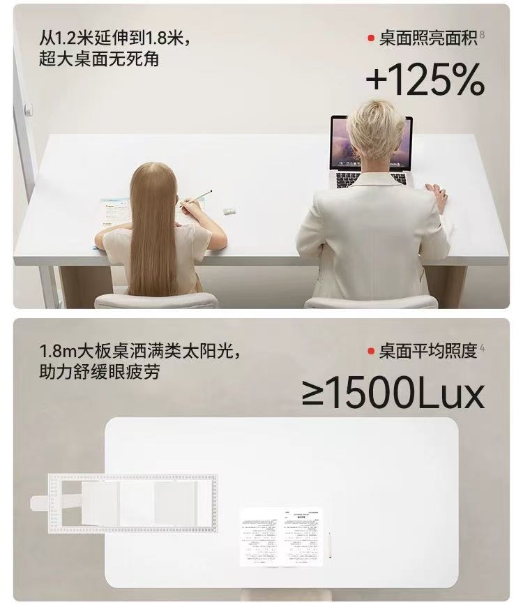 人体感应 + 昼夜节律:靠近 4 米自动开启环境光,1.6 米内双光源同步点亮;昼夜模式模拟太阳变化 —— 清晨高蓝光提神,夜晚低蓝光***,帮熬夜党、学生党校准生物钟。