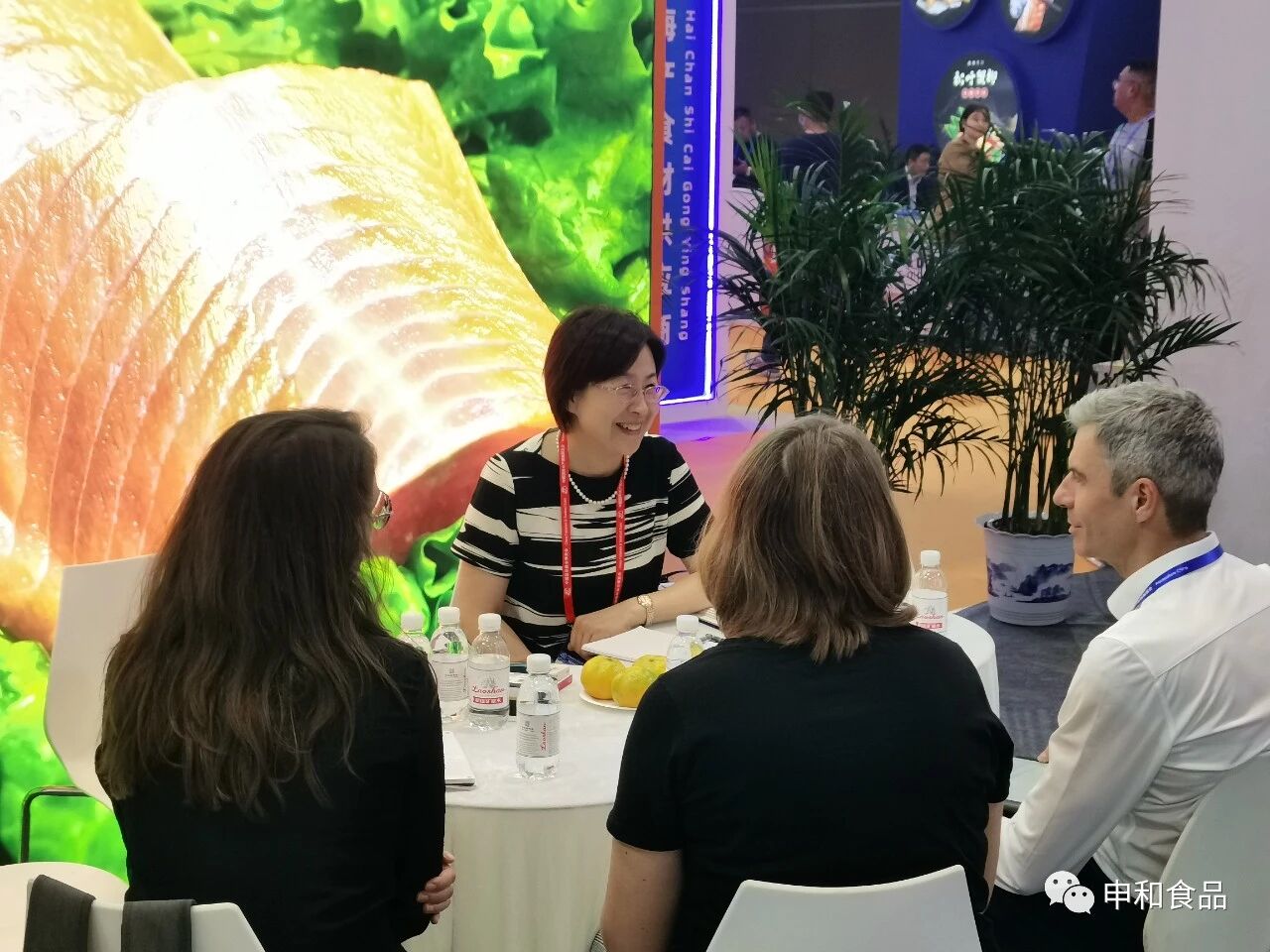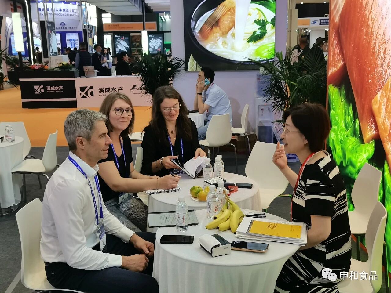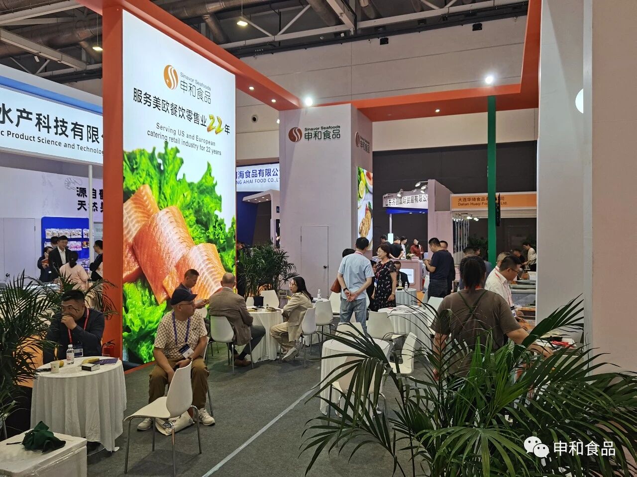 作为在深海鱼加工行业深耕多年的申和食品,服务美欧餐饮零售业二十二年,与国内外众多客户都有稳定的合作和交流。这次展会,申和展位的客户接待区也迎来了众多国内外客户,公司的接待桌前客户来访不断,洽谈合作者陆续依约而至。他们带来了老客户巩固稳定合作和寻求新发展的探讨,也带来了新客户慕名而至、期望合作的迫切心情。