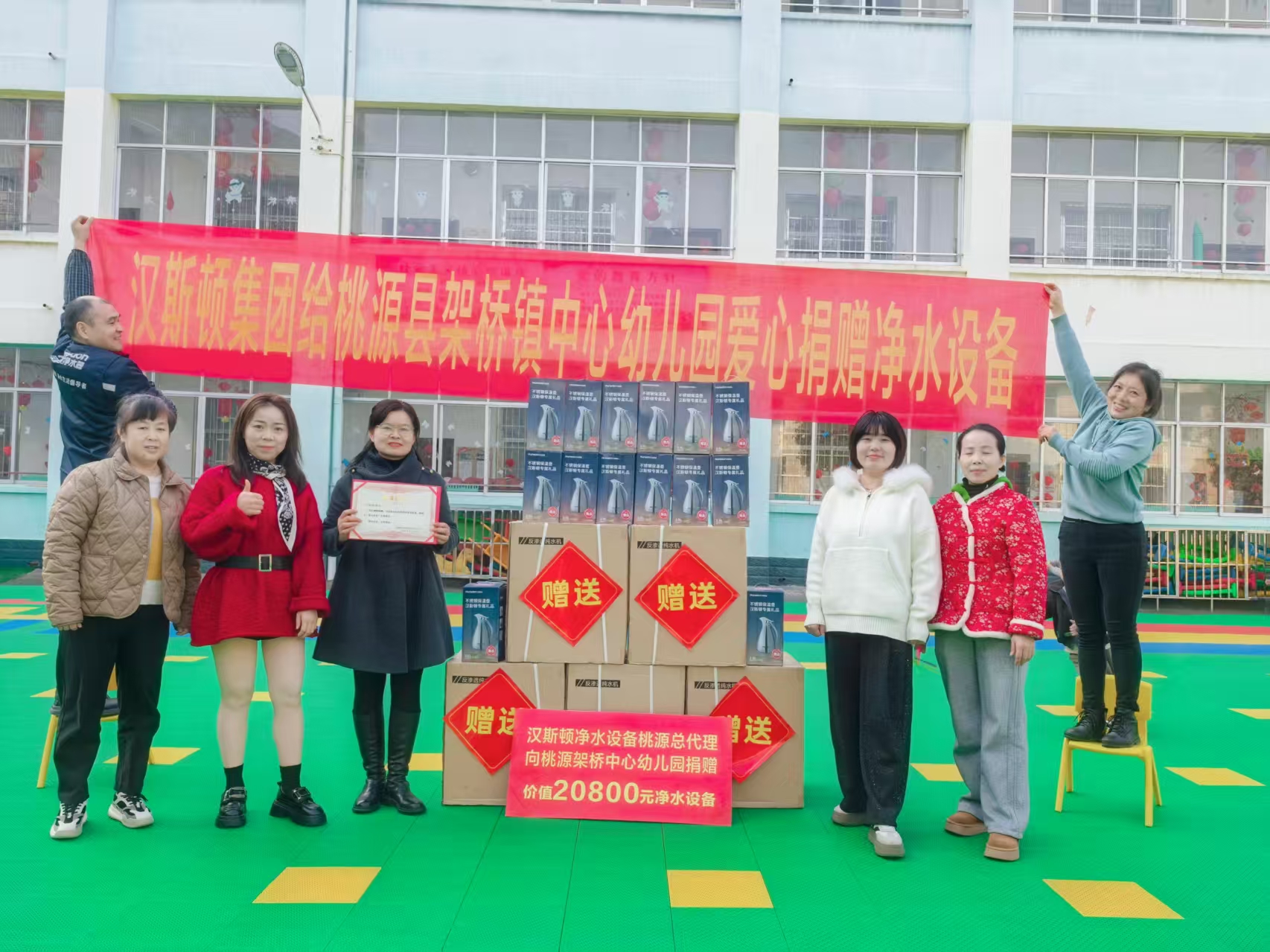近日,汉斯顿净水以实际行动诠释企业担当,向湖南省桃源县架桥镇中心幼儿园慷慨捐赠了价值两万元的净水设备,为乡村儿童的饮水健康保驾护航,为改善校园饮水条件注入了温暖力量。