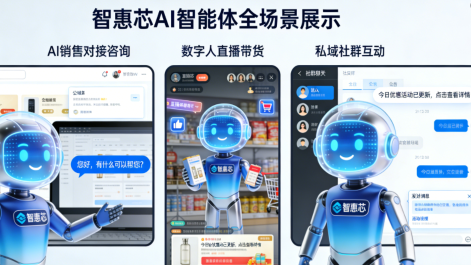 智惠芯AI智能体具备多模态交互能力,支持文本、语音、多语言识别,可化身专属AI销售、客服、主播,实现全场景服务覆盖。无论是公域平台的咨询承接、私域社群的互动培育,还是数字人直播的全天候带货,都能精确匹配用户意图,引导转化。如同维修行业商家引入智能体后,日均挽回流失商机200余单,成单率提升30%以上,智惠芯AI智能体也能帮企业稳稳接住每一次潜在商机。
