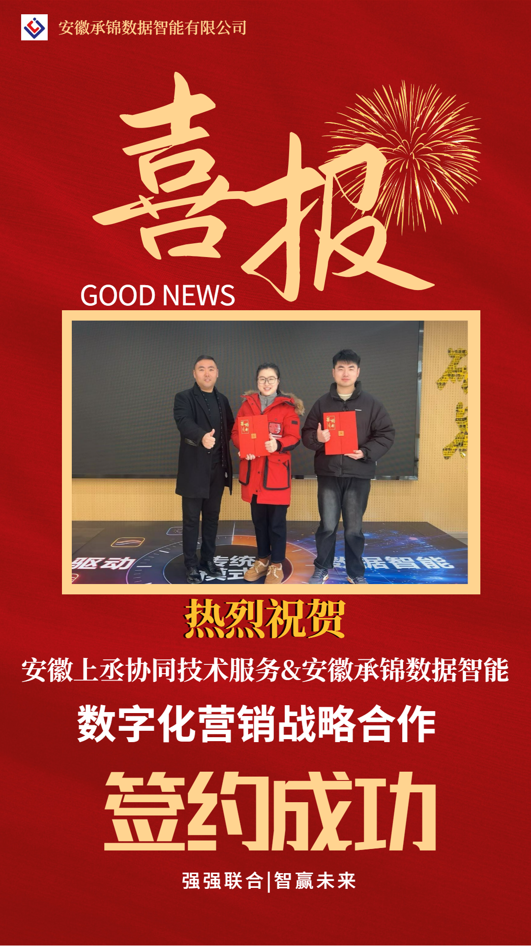 热烈祝贺安徽上丞协同技术服务有限公司与安徽承锦数据智能有限公司正式达成数字化营销战略合作并成功签约!这不仅是双方在数字化领域深度携手的重要里程碑,更是响应企业数字化转型浪潮、赋能行业高质量发展的关键一步。