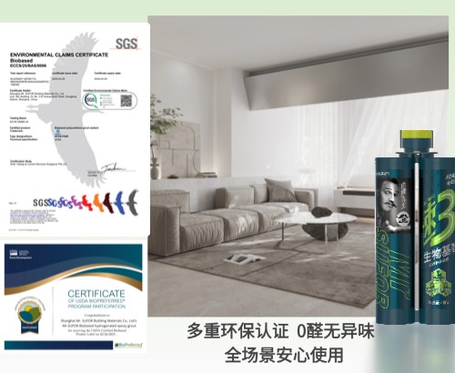 业内率先通过瑞士SGS和美国农业部USDA双重生物基认证,还通过了包括法国A+、国家十环、美国FDA、国检等一系列认证,施工环境更安全,降低健康风险。