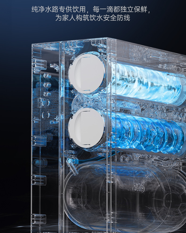 这款净水器在过滤效果方面,也是深受大众的喜爱。采用PCT复合滤芯+RO反渗透滤芯。PCT复合滤芯:高效拦截泥沙、铁锈、余氯等大颗粒杂质,延长RO膜寿命。RO反渗透滤芯:搭载汉斯顿技术,过滤精度达0.0001微米,可深度去除重金属、细菌、病毒、等有害物质,过滤后的水达到直饮标准,母婴家庭亦可安心使用。