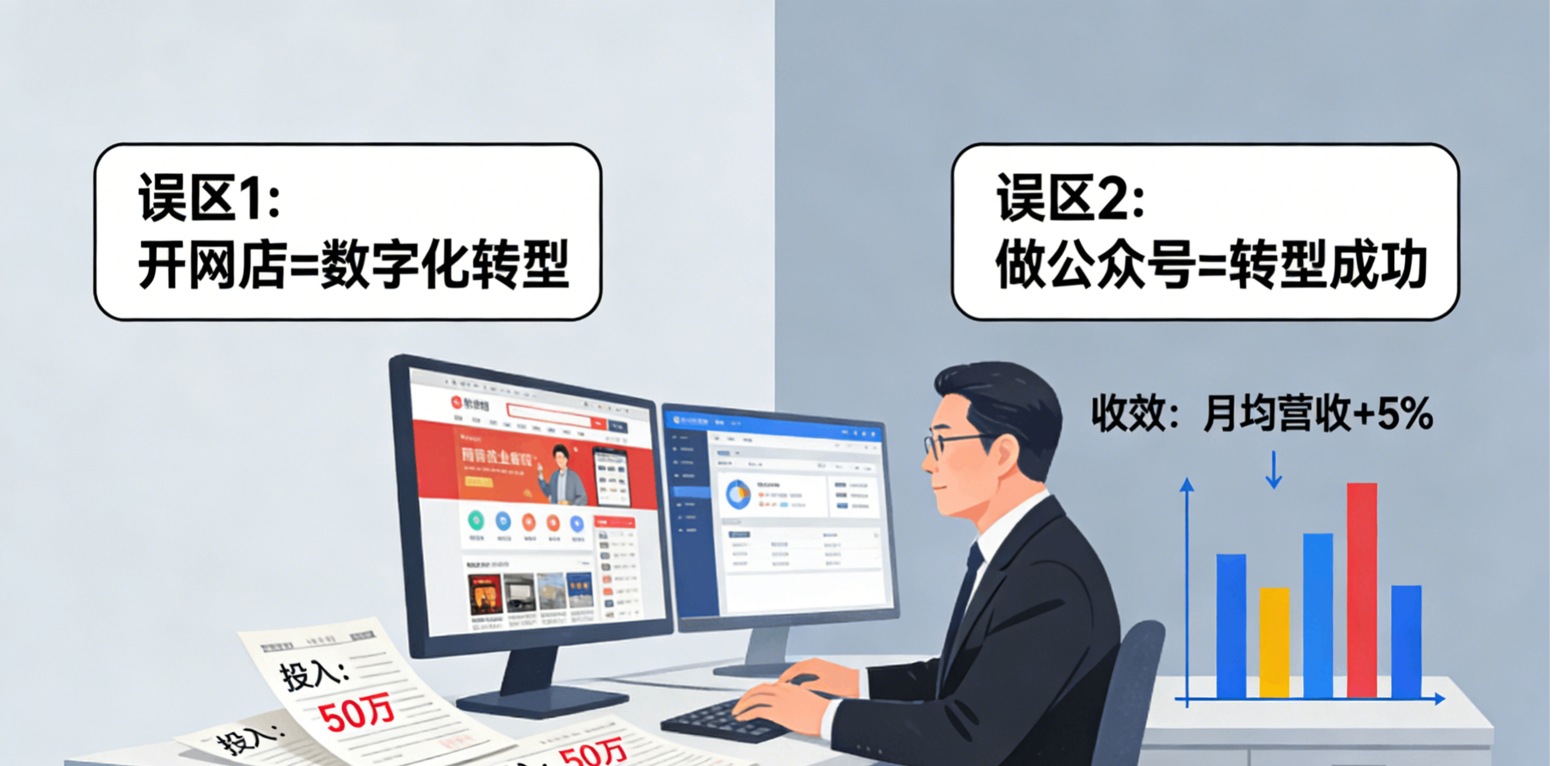转型线上的难题往往不是技术,而是决策者的认知。“不就是开个网店、做个公众号吗?”这种轻视数字化复杂性的思维,让许多企业投入几十万后只见水花不见波澜。