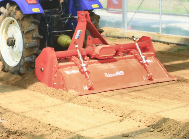 无锡悦田的YTMC-140机型,创新性地实现了“旋耕+碎土+灭茬+平地”一次性联合作业。该机具作业耕幅为1400mm,专为大棚及露地小地块设计。其优势在于采用了侧边齿轮传动结构,相比传统链条传动,动力损失更小,传动效率更高,能够匹配30-45kw动力的拖拉机,在保证作业强度的同时降低了能耗。