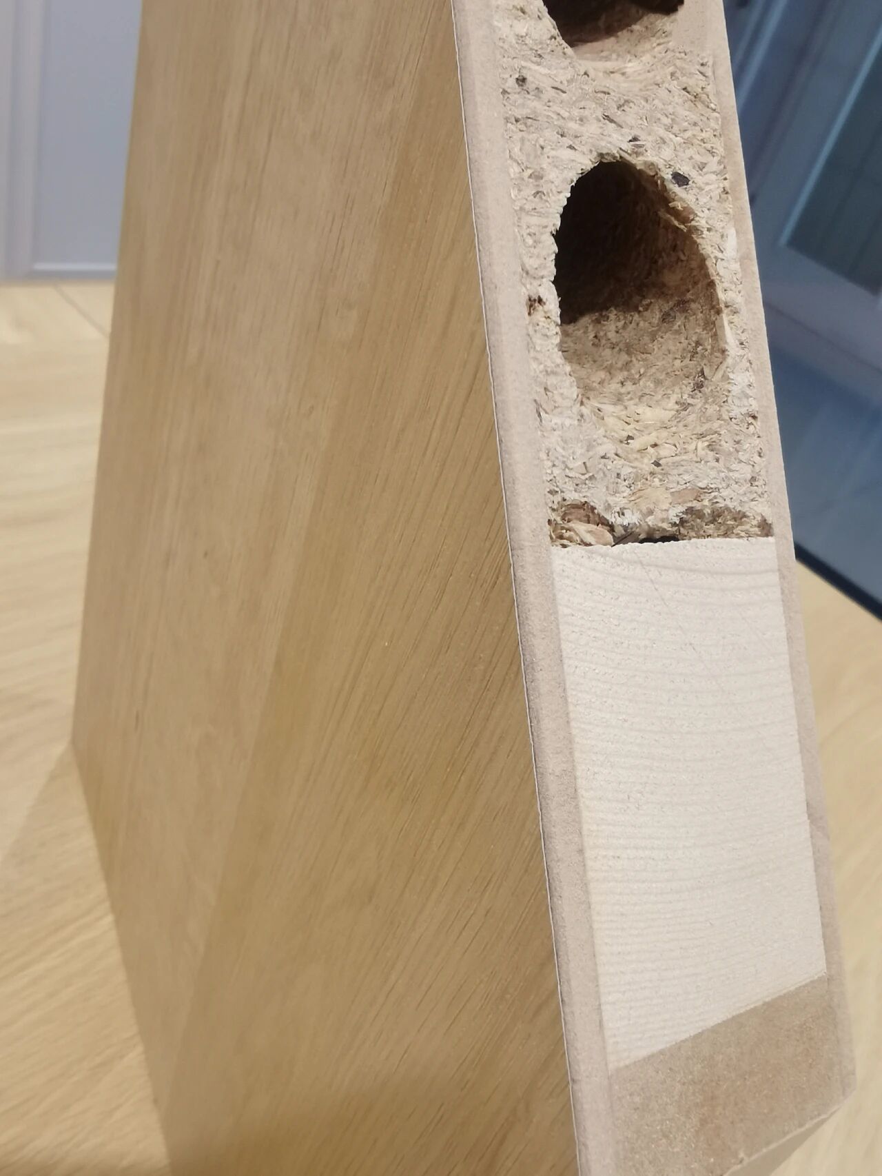 选用“杜拉特”CPL防火板做面料,具有强耐磨,耐刮擦,耐冲击,耐酸碱,防潮,不变色,阻燃等性能。用钥匙在面板上随意刮划,不会留下一丝轻微的划痕;用打火机灼烧板面也不会有任何变化。