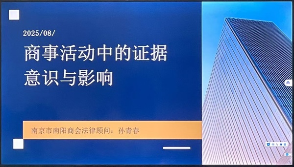 商会法律顾问、北京中银(南京)律师事务所孙青春律师亦应邀出席,围绕《商事活动中的证据意识与影响》展开专业分享。她从证据在商事活动中的关键价值出发,详解民事诉讼法八大证据类型,结合典型案例剖析企业常见证据风险(如电子数据未固定、非法取证、口头合约难追溯等),并提出实用的证据管理规范建议,助力企业构建合规安全的经营防线,内容深受与会企业家重视。