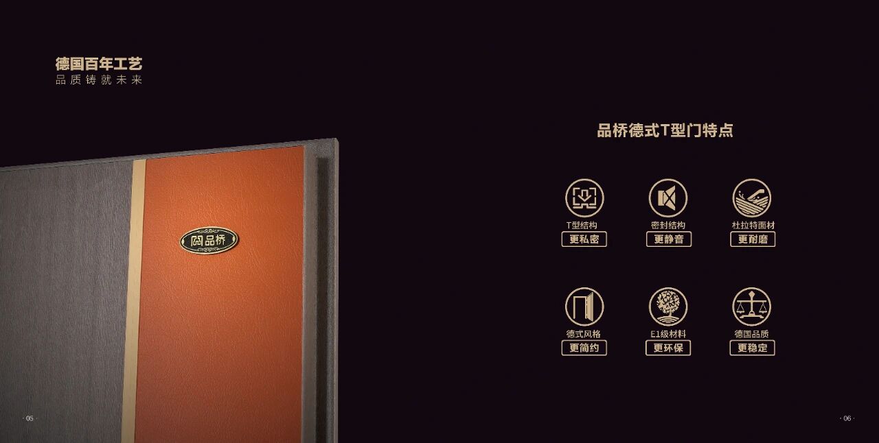 综上所述,品桥木门的德式T型门以其独特的设计、精湛的密封和隔音性能、环保的材质以及全屋定制的服务模式,成为了现代家居装修中的之选之一。选择品桥木门,就是选择了一个品质与品味并存的家居生活。在未来的日子里,品桥木门将继续秉承“品质至上、服务”的理念,为更多家庭带来品质的家居装修体验。