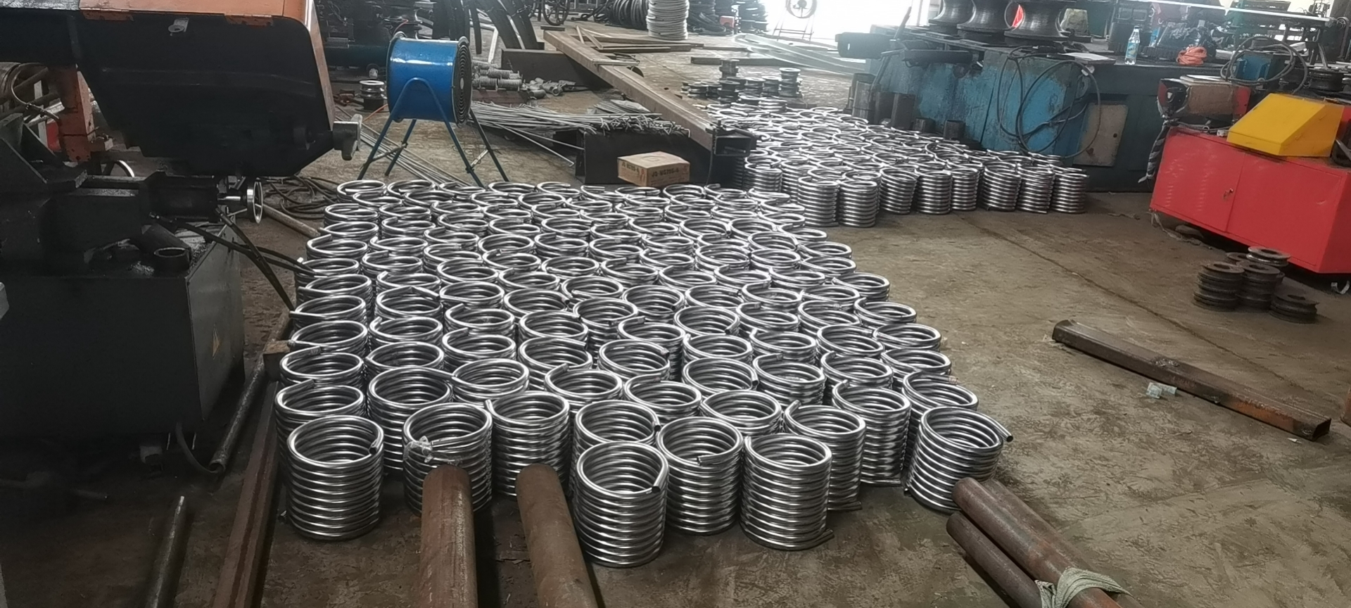 上海勇逸弯管有限公司(上海新顺弯管有限公司)承接直径22不锈钢圆管盘管加工定制批发销售,直径22mm不锈钢圆管盘管加工以冷弯/热弯成型为主,配合光亮退火与精整定径,为了实现无焊缝、壁厚均匀、表面光亮的连续盘卷成品,主流工艺路线为:不锈钢带制管 → 连续弯管(数控或热弯)→ 光亮退火 → 定径切割 → 防护包装。直径22mm属于中小规格不锈钢圆管,用于换热器、风机盘管、冷却系统及小型工业设备中。该尺寸既适合自动化盘绕,又兼顾强度与柔韧性,因此多采用“带材制管+在线盘绕”或“直管冷弯成盘”两类路径。需特别注意:22mm管易在冷弯中出现回弹或表面划伤,故产线普遍配备伺服数控弯管机与防护模具。选304/316L等奥氏体不锈钢带,厚度按需求匹配(常见0.4–2.0mm),确保延伸性与耐蚀性;采用高频焊管机组在线连续制管,焊缝经轧平+酸洗处理,达到“肉眼无缝”效果。冷弯法:适用于壁厚≤1.2mm的22mm管,使用全自动数控弯管机,通过程序设定弯曲半径(如R=180mm)、角度与进给速度,避免回弹误差。对厚壁(≥1.5mm)或高精度要求场景,加热至900–1000℃后弯制,减少裂纹风险,但需控温防氧化;抽芯弯:插入芯棒防止塌陷,特别适配U型、螺旋型等复杂盘形。参与上海市内重点工程,钢结构,不锈钢,铝合金弯曲,弯圆,拉弯,弯头、盘管、扶手、栏杆、推车,幕墙、门窗、扶手、导轨,钢、铝、铜、镐、钛,天窗、雨棚、螺旋楼梯、自行车停车架,户外运动器材,户外健身器材,汽摩配件,挖掘机,泵车等工程机械设备管路配件,机械公司零部件供应商!