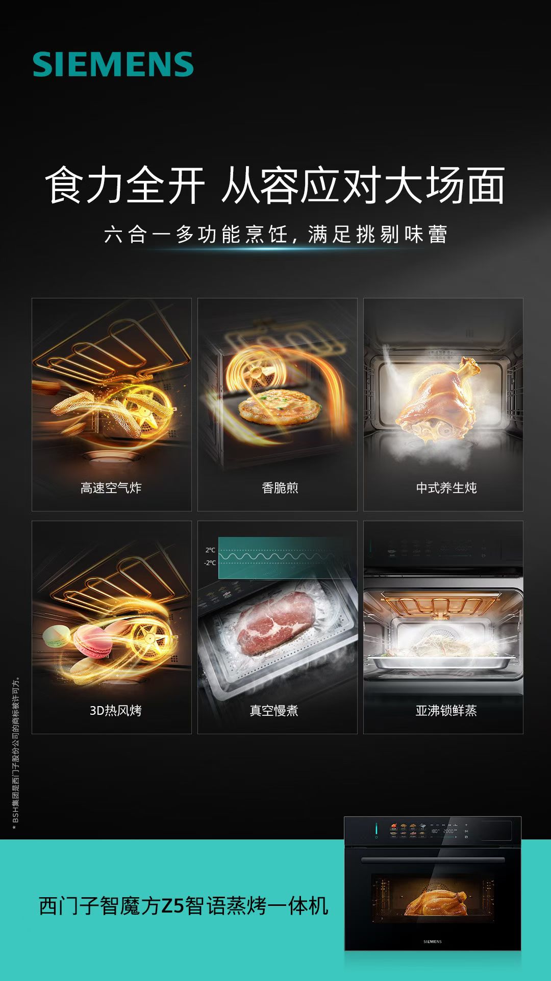 重磅新品来袭,西门子智魔方Z5智语蒸烤一体机正式登场,作为行业内嵌语音模组的AI蒸烤箱,凭借前沿智能科技与专业烹饪实力,重新定义现代厨房的智能烹饪新范式。