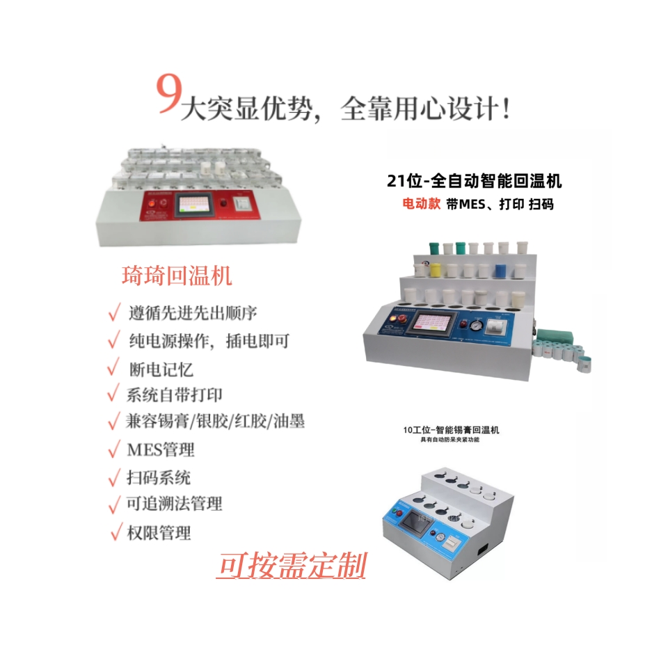 在电子制造领域,锡膏作为表面贴装技术(SMT)生产线的重要耗材,其温度状态直接影响焊接质量和生产效率。锡膏从冷藏状态取出后,需要经历充分的回温过程才能达到工艺要求的使用温度。传统回温方式存在温度控制不精确、回温时间难以把握、缺乏过程记录等痛点,容易导致锡膏粘度不稳定,进而影响印刷质量和焊接可靠性。